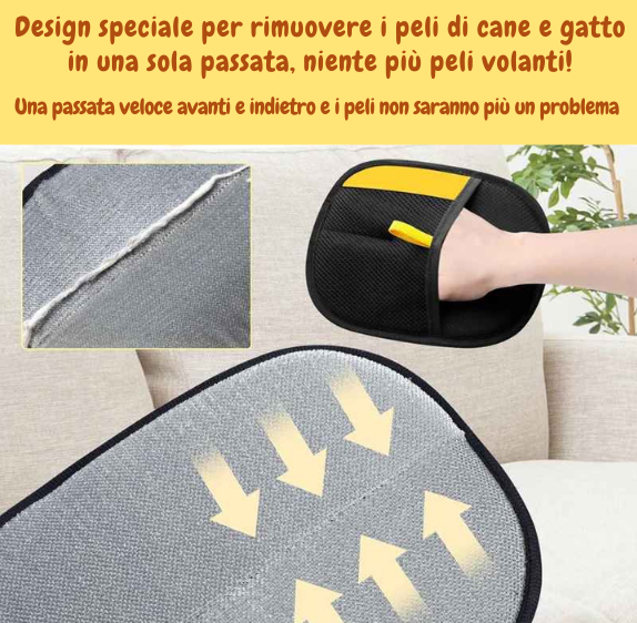 basta passare delicatamente il guanto per assorbire lanugine, peli di animali domestici e polvere. Non è necessario ruotare ripetutamente o faticare per rimuovere i detriti ostinati.
