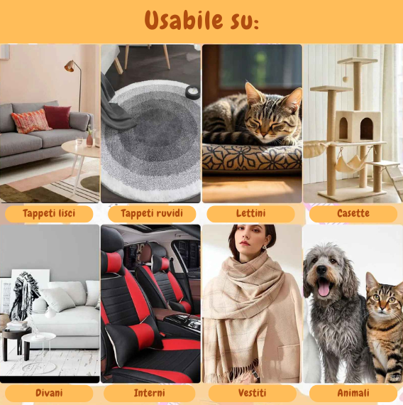 È anche efficace per rimuovere i peli da vestiti, mobili e altro ancora.